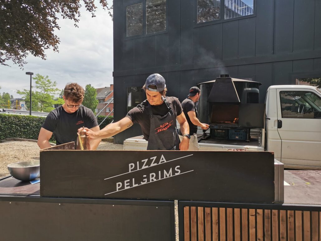 Een pizza foodtruck huren voor je feest? Wij brengen authentieke houtovenpizza’s naar huwelijken, bedrijfsfeesten verjaardagen. Elk feest dus. Met onze drie pizza foodtrucks en een ervaren team bedienen wij vlot tot 750 gasten binnen 2 uur. Voor nog grotere events werken wij samen met andere foodtrucks en verzorgen we totaalconcepten tot 2000 gasten. Kleinere feesten? Say hello to onze Pizza-Party-Box.