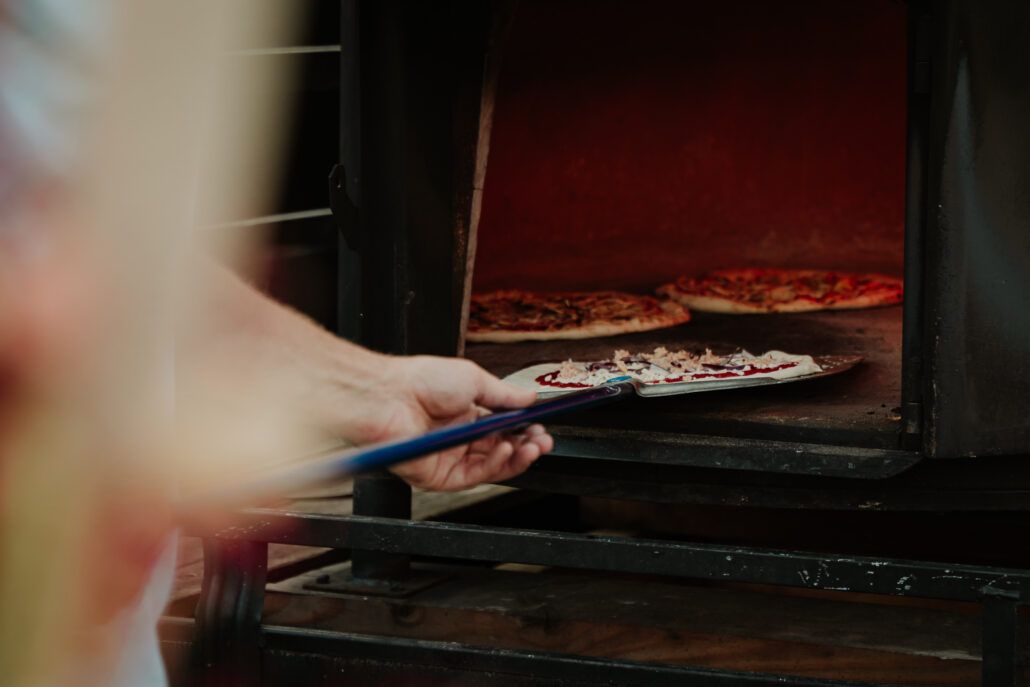 Verse houtovenpizza’s ter plaatse gemaakt en gebakken